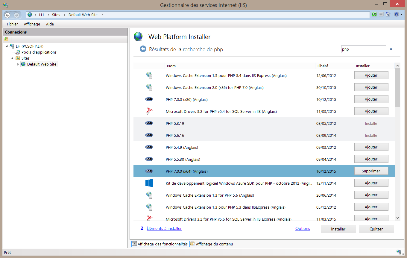 "Web Platform Installer" irá baixar o motor PHP, iniciar a instalação e o que é particularmente interessante, irá configurar o servidor IIS para este motor.
