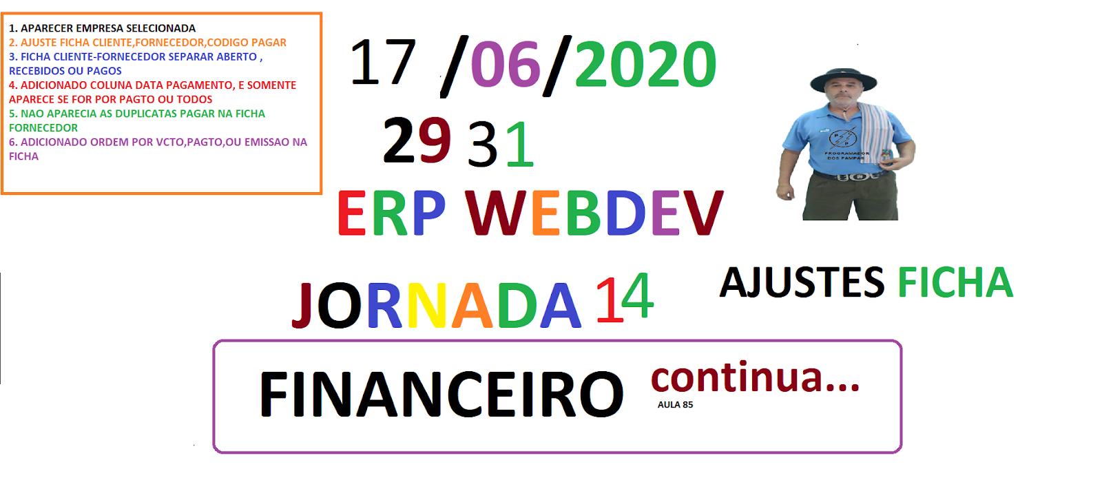 DICAS 2931 - WEBDEV - ERP WEB MATOS - AULA 89 - JORNADA 14 - AJUSTES